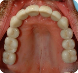 Traditionally implants are placed in the jaw after complete bone healing following extraction of the tooth or teeth. An incision is made in the gum tissue and the implant site is prepared to receive the implant. The implant is placed very carefully according to a predetermined restorative plan. This is very important. The implant must be placed to best support the tooth or prosthesis in a healthy bite. The incision is closed with sutures and allowed to heal for a period of 2-6 months (depending on the case). After appropriate healing, the implant cover is gently exposed and a component called a healing abutment is connected. The healing abutment is a transitional component that is only worn during the period following implant exposure and before prosthesis delivery. This is usually 2-4 weeks. An impression is made during this time and the final abutment and crown is fabricated at the lab. Single crowns and short span bridges (or FPDs) made to fit on implants are very similar to crowns and bridges made to fit on natural teeth. The final abutment which connects the crown to the implant is a custom component which is contoured specifically for each individual case to optimize soft tissue health, esthetics and stability. The abutment may be cast from a high noble, hypoallergenic alloy or milled from titanium or zirconia.